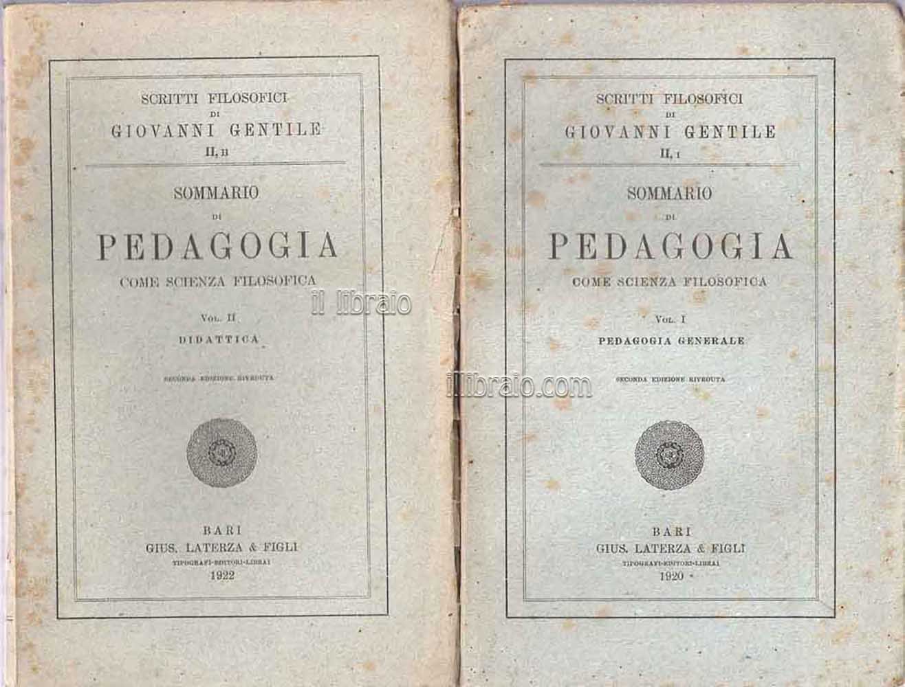 2 voll.; in 8°; pp. 252, 212; br.; coll. Scritti filosofici di G. Gentile (parzialmente intonsi); vol. I: Pedagogia generale - vol. II: Didattica