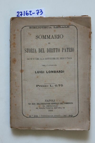 Sommario di storia del diritto patrio. Dai re di Roma alla costituzione del Regno d'Italia