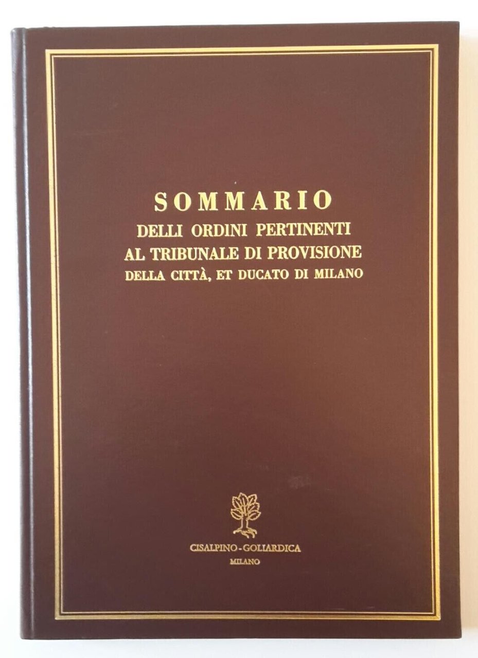 SOMMARIO ORDINI PERTINENTI TRIBUNALE DI PROVISIONE DELLA CITTA' ET DUCATO MILANO
