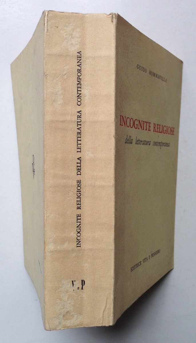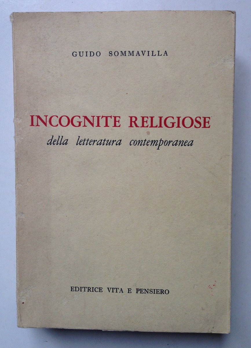 SOMMAVILLA GUIDO, INCOGNITE RELIGIOSE DELLA LETTERATURA CONTEMPORANEA MILANO, VIRA E PENSIERO 1963, in 8°, pp. 696, dedica parzialmente cancellata al frontespizio, br ed. Condizioni di conservazione Esemplare in buono stato con leggere tracce d'uso; brossura editoriale con minime abrasioni e strappetti ai piatti, ai margini, agli angoli e al dorso. MM1686.F5-512