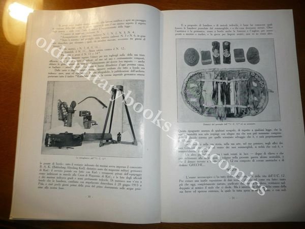 DESCRIZIONE: Alfieri e Lacroix Milano 1917 br. ed. ill. pp. 55 cm 19,5x29,5 in 8°, rivista pressochè illustratata con numerose foto anche a piena pagina inedite. Bella monografia dedicata ai sommergibili italiani durante la Prima Guerra Mondiale. Copertina di Dudovich. CONDIZIONI: Discrete/Buone vol. con segni del tempo, dorso con danni. PESO / WEIGHT: 178 gr. without package