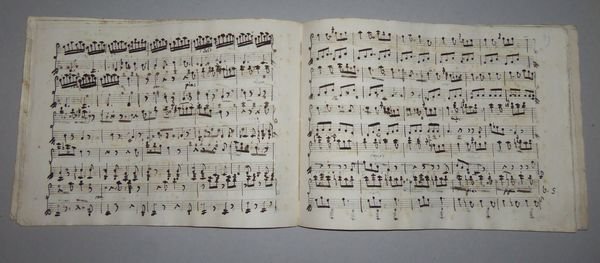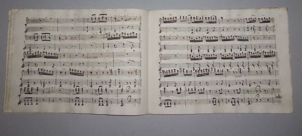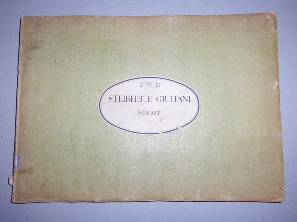 [Musica-Manoscritto] Sonate a Quatre Mains Pour Le Piano Forte Composee Par D. Steibelt. (fine '700).-- pp. 32. Confronta Fetis VIII 119 ed Eitner IX 268. SEGUE: GIULIANI G.F. Prima sonata a quattro mani del M.ro Giuliani. (fine '700).-- pp. 72. Confronta Fetis IV 17 ed Eitner IV 270. (cm. 22,5x31 oblungo) le due opere in un volume cartonato originale verde. contiene musica manoscritta a penna su righi tracciati a mano fine sec. XVIII ( 4 carte sono senza musica). Perfetto stato di conservazione e chiarissima grafia. Ex libris Ms. "Catarina Doria".[f43]