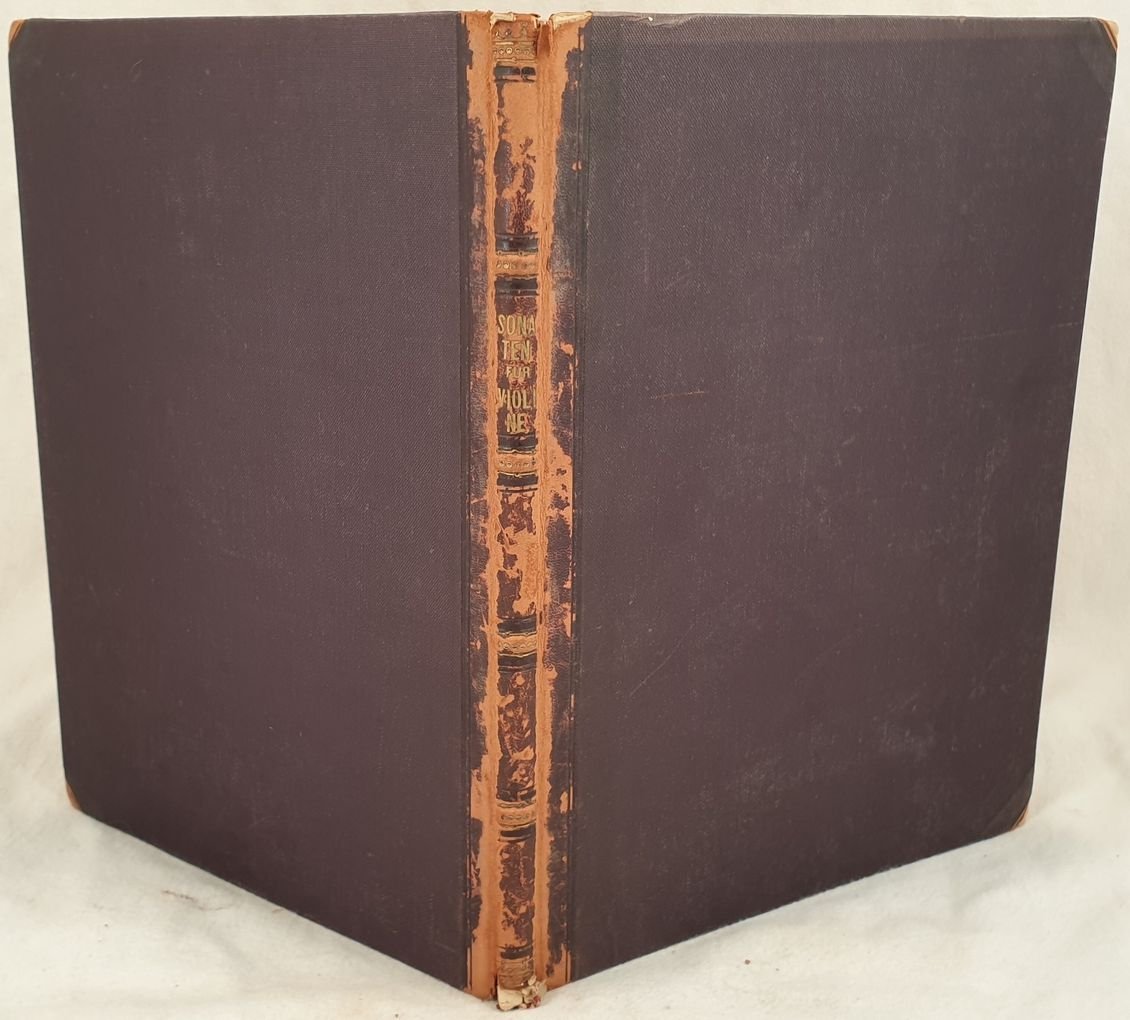 Raccolta di quattro spartiti legati insieme nello steso volume dei primi del novecento. Il primo 18 sonate per violino e pianoforte di Mozart. Il secondo otto Sonate per violino di J. Haydn. Il terzo "Drei sonaten" per pianoforte e violino n. II dall'opera 12 di Beethoven. Il quarto la Sonate per violoncellon. 3 dall'op. 137 di Schubert.<BR><BR>In buone condizioni con fioriture.<BR><BR>Copertina in mezza pelle in discrete condizioni generali con usure e parti mancanti ai margini e dorso. Legatura in discrete condizioni con qualche rottura. Pagine in buone condizioni con fioriture. Pagina 6 e 7 del primo spartito attaccate con nastro adesivo e con usure marginali. In folio. cm. 31x23,5. Pp. 72+31+6+6.Colelction of four musical score bound together in the same volume of early 20th century. The first one is 18 sonates for violin and piano by Mozart. The second one eight Sonate for violin by J. Haydn. The third one "Drei sonaten" for piano and violin n. II from the work 12 by Beethoven. The fourth one the Sonate per violoncellon. 3 from the work op. 137 by Schubert.<BR><BR>In good conditions with foxings.<BR><BR> <BR><BR>Half leather cover in fair conditions with wearings and missing parts in the edges and spine. Binding in fair conditions with some cracks. Pages in good conditions with foxings. Pages 6 and 7 of the first musical score attached with adhesive tape with worn edges. In folio. cm. 31x23,5. Pp. 72+31+6+6.