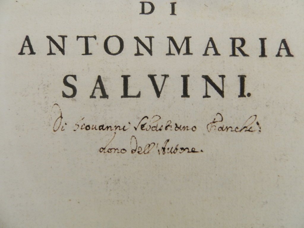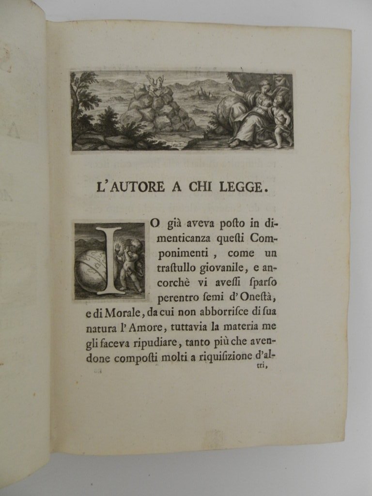 4^, pp. (8), 416, (16), ritratto dell'autore in antiporta, frontespizio in rosso e nero con stemma e motto della Crusca, bella testatina e capolettera figurato alla terza carta; legatura strettamente coeva in piena pergamena con titolo manoscritto al dorso, una piccola abrasione al piede del dorso, un timbro illeggibile al frontespizio. Bellissimo esemplare, donato dall'autore a Giovanni Sebastiano Franchi, come affermato dalla nota all'occhietto, forse un parente stretto dell'editore, o più probabilmente l'editore stesso che compare nei libri da lui stampati col nome Santi, che potrebbe essere scomposto dai due nomi Giovanni e Sebastiano. Al verso della prima carta bianca si legge Magnifica e corretta edizione Lire 10. Lo stesso Gamba, (2430): "Magnifica edizione". . *** TUTTI I NOSTRI LIBRI SONO VISIBILI PREVIO CONTATTO MAIL O TELEFONO NELLA NUOVA SEDE DI MILANO: LIBRERIA COSMOPOLIS, VIA JOMMELLI, 22. ***