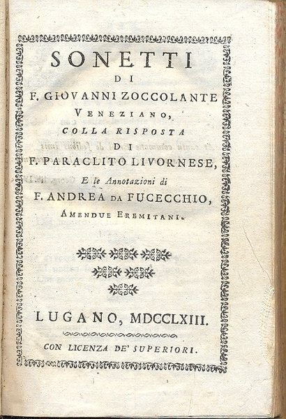 Sonetti di F. Giovanni Zoccolante veneziano, colla risposta di F. Paraclito livornese, e le annotazioni di F. Andrea da Fucecchio.