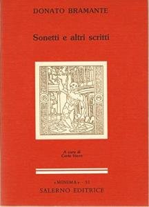 128 pagine. Brossura. cm 12 x 16,5 x 1,1. gr 155. Collana: Minima, 51. BUONE CONDIZIONI. Commento dell'editore e quarta di copertina: Donato d'Angelo Lazzari, detto il Bramante (1444-1514), una delle figure più importanti dell'arte e dell'architettura del Rinascimento, se non fu certo «omo de lettere», pure ha lasciato qualche prezioso vestigio letterario. Lettore di Leon Battista Alberti e di Pietro della Francesca, aperto a influssi neoplatonici e ficiani, a Milano, dove soggiornò per alcuni anni alla corte di Ludovico il Moro, Bramante seppe anche improvvisarsi poeta". Consegnò così alla storia un manipolo di 25 sonetti, d'amore taluni e di stretta osservanza petrarchesca, burleschi altri, alla maniera del Burchiello e del Pistoia (1488-1499). Ma il Bramante fu anche autore di scritti teorici, di cui oggi resta soltanto una relazione tecnica sul tiburio del Duomo di Milano, redatta in volgare, seppur intitolata Bramanti opinio super domicilium seu templum magnum (1488). Rimane ancora un altro testo, il solo autografo: la breve "relazione di Crévola" al Moro intorno a certe fortificazioni, d'interesse puramente documentario (1493). Recuperati dopo un lunghissimo silenzio e per la prima volta riuniti insieme, con il corredo di un minuto commento in nota, i sonetti e gli altri scritti contribuiscono a gettare luce su una personalità grande quanto sfuggente e ancora poco nota."