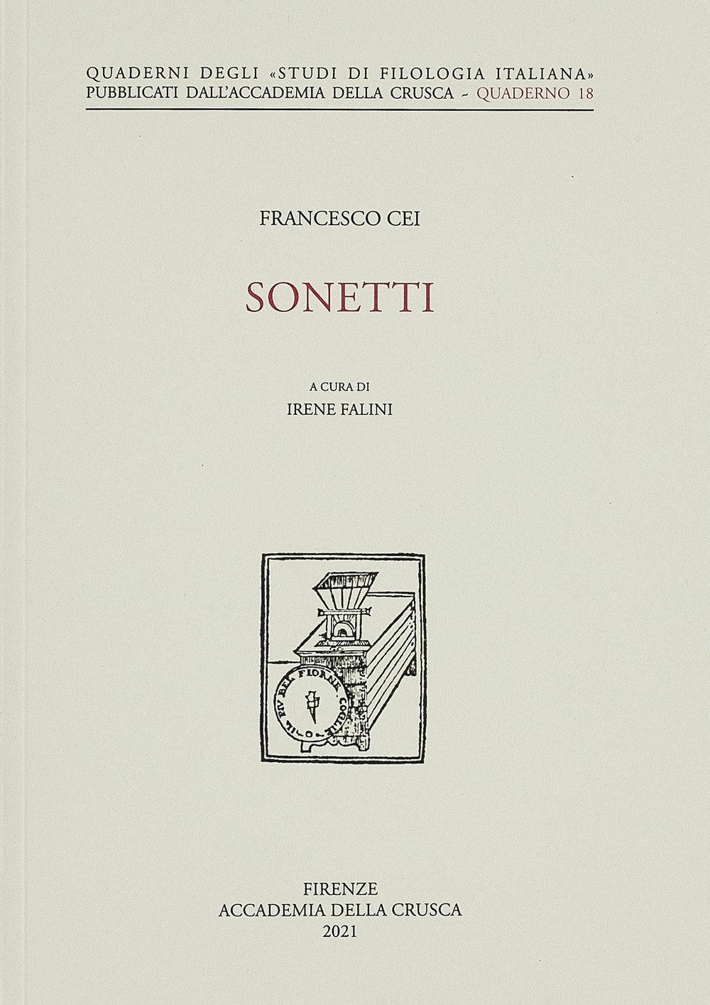 Dopo vari studi sulla tradizione e sui contenuti del «corpus» di rime di Francesco Cei (96 sonetti, 8 capitoli ternari, 9 canzoni, 3 sestine, 20 stanze e 17 strambotti), Irene Falini offre qui l'edizione critica e commentata dei sonetti, la sezione più rappresentativa dell'opera poetica ceiana. Mentre l'edizione dell'intero canzoniere, presentato senza commento nel 1994 da Marta Ceci, si basava su un solo esemplare dell'«editio princeps» Firenze, Filippo di Giunta, 1503), questa nuova pubblicazione tiene conto di tutti gli esemplari della giuntina (con rare varianti) e analizza anche la redazione alternativa tràdita dal riscoperto manoscritto XIII D 50 della Biblioteca Nazionale di Napoli. Benché non contemplati per l'edizione critica, nell'Introduzione vengono descritti anche i testimoni manoscritti latori di sonetti spicciolati e quelli a stampa successivi all'«editio princeps». Il commento mira sia a chiarire la lettera sia a inquadrare ciascun sonetto nel panorama stilistico e letterario coevo, auspicando così una rivalutazione critica del Cei. Chiudono il volume un'Appendice sui testi tramandati dalle ristampe, un Indice dei temi e un Indice delle voci notevoli commentate.