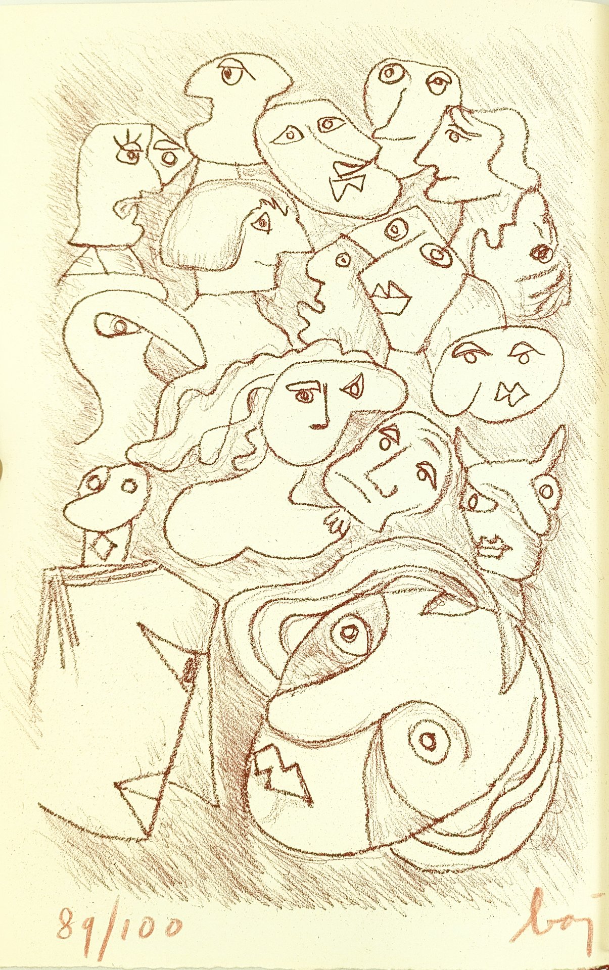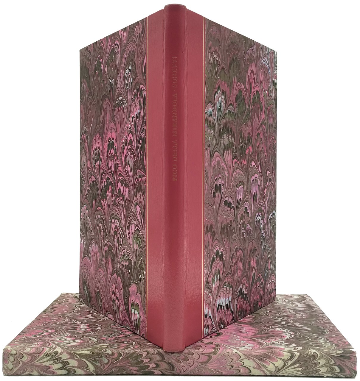 In 8vo (230x150 mm). Pagine 68, [4]. Con un’acquaforte originale di Enrico Baj in antiporta, firmata e numerata a matita. Esemplare n. 89 su una tiratura limitata a 100 copie fuori commercio su carta a tino Magnani. Ottima copia. Legatura editoriale in mezza pelle rossa con piatti rivestiti in carta marmorizzata e titoli impressi in oro al dorso, protetta da sovraccoperta in acetato; taglio di testa dorato. Entro cofanetto in cartonato marmorizzato.