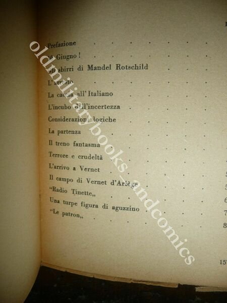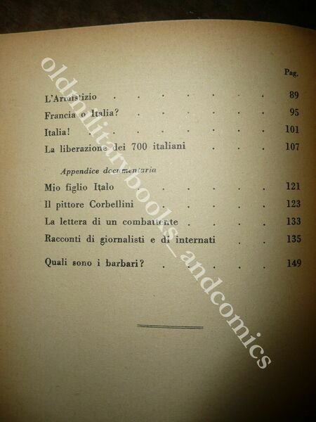 "DESCRIZIONE: Casa Ed. Cultura Milano 1940, br. ed. ill. col., pp. 158 22 tavole in b/n f.t. di Corbellini, Antoniozzi e Prino, 2 illustrazioni f.t. e copertina a colori di Antoniozzi in 8°. L'A., giornalista, fu internato in seguito alla dichiarazione di guerra dell'Italia alla Francia. "Questo volume, che altro non è, se non la cronaca rigidamente fedele ed esatta del modo con cui il popolo e le autorità civili e militari francesi hanno trattato settecento loro ospiti, di non altro rei che di essere italiani". CONDIZIONI: Buone vol. con cop. vissuta. PESO / WEIGHT: 300 gr. without package"