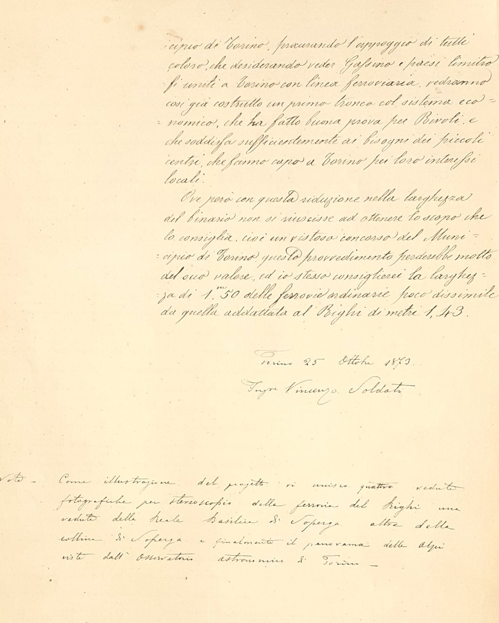 Soperga Progetto di massima della Ferrovia e Villa Torino 1873