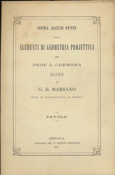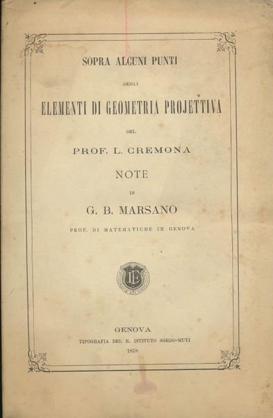 Sopra alcuni punti degli elementi di geometria projettiva del prof. L Cremona. Note di G. B. Marsano