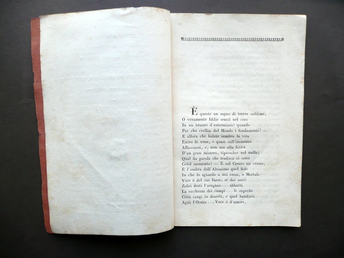 Opuscolo, Sopra il dipinto del Professore Giuseppe Bezzuoli Rappresentante il terremoto di Borgo S. Lorenzo Ispirazione poetica di Ugo Marini Nella Stamperia Granducale, Firenze 1837, cm 20,5x14, pp. 16; brossura muta d'epoca in cartoncino. Condizioni di conservazione Esemplare in buone condizioni con tracce d'uso; dorso con poche minime abrasioni e un paio di minuscoli strappetti alle cuffie. Interni buoni con alcune piccole lievi bruniture. OPEB.3282 N