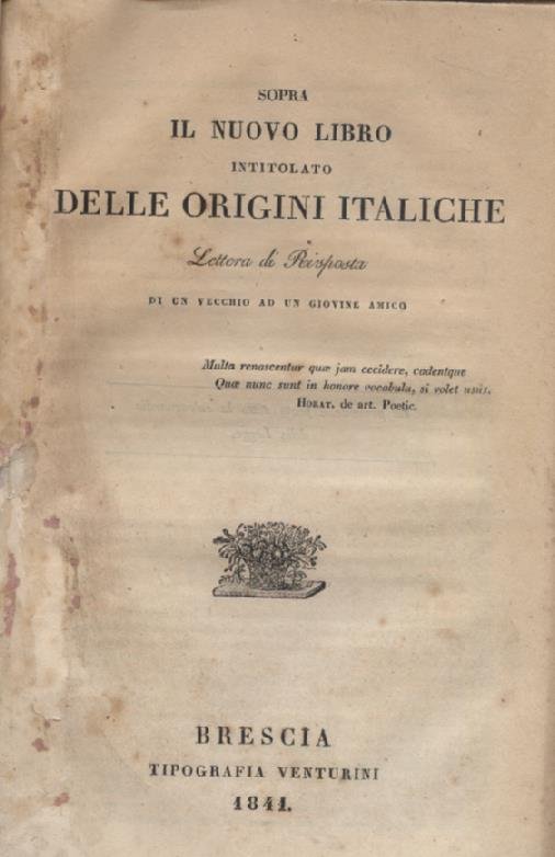 Sopra il nuovo libro intitolato delle origini italiche. Lettera di risposta di un vecchio ad un giovine amico