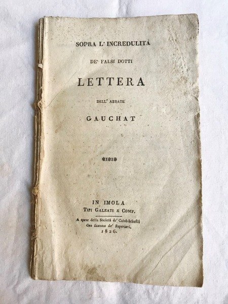 SOPRA L' INCREDULITA' DE' FALSI DOTTI. Lettera dell'Abbate Gauchat.