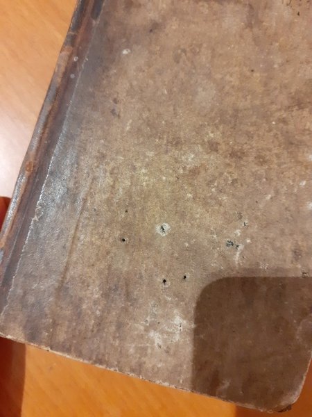 Alcuni buchi di natura sconosciuta su copertina e alcune pagine.