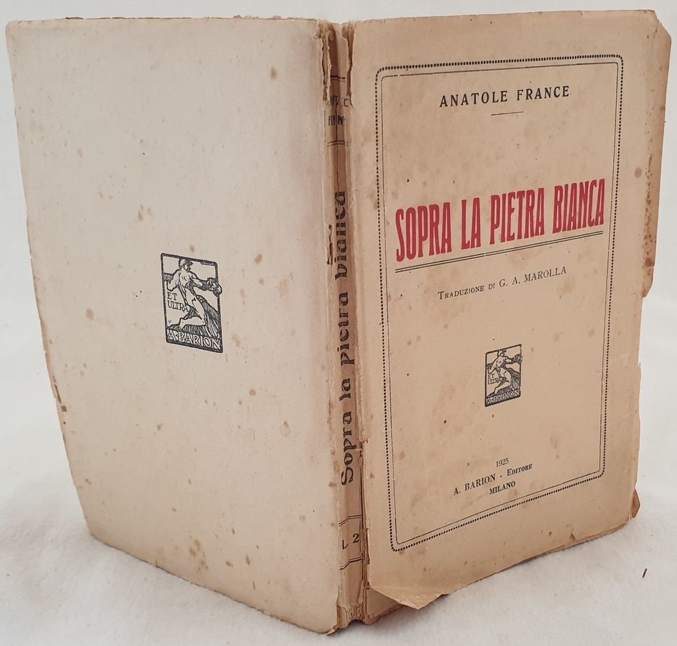 Edizione Barion del 1925 di questo romanzo dello scrittore francese Anatole France (1844-1924).<BR><BR>Traduzione di G. A. Marolla.<BR><BR>In buone condizioni.<BR><BR>Brossura editoriale in buone condizioni generali con lievi usure ai margini e dorso. Legatura in buone condizioni. All'interno le pagine si presentano in ottime condizioni con rare fioriture. In 8. Dim. 19,5x13,5 cm. Pp. 156+(1).