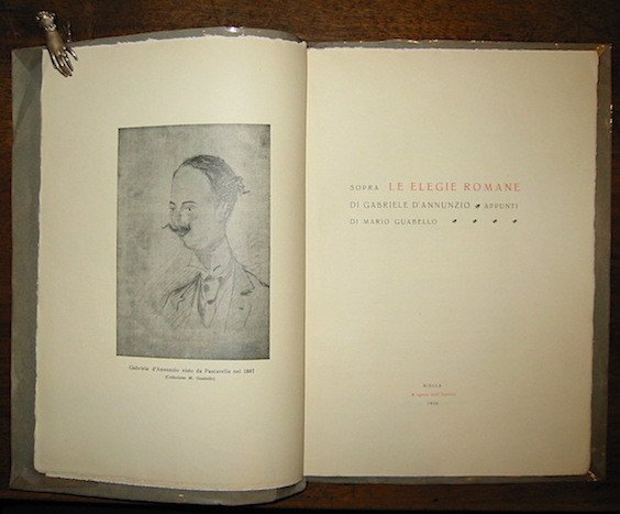 8vo (cm. 26), 1 c.nn., LVII(1) pp., 1 c.nn. con alcune ill.ni n.t. Un ritratto (D’Annunzio visto da Pascarella) in antiporta e facsimili d’autografo n.t. Brossura editoriale. Ottimo esemplare. È il n. 8 dei ‘Quaderni Dannunziani’. Esemplare n. 21 dei 65 su carta a mano numerati da 11 a 75. Dedica autografa dell’A. sulla prima carta bianca.