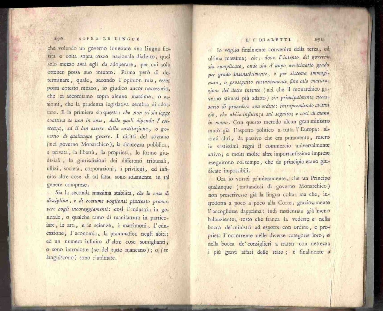 In 8°, pp. da 267 a 298. Brossura muta azzurra dell'epoca. Segni di muffa all'angolo superiore ma copia in ordine. Estratto dagli atti della Patria Società Letteraria, società in cui venne presentato questo discorso.