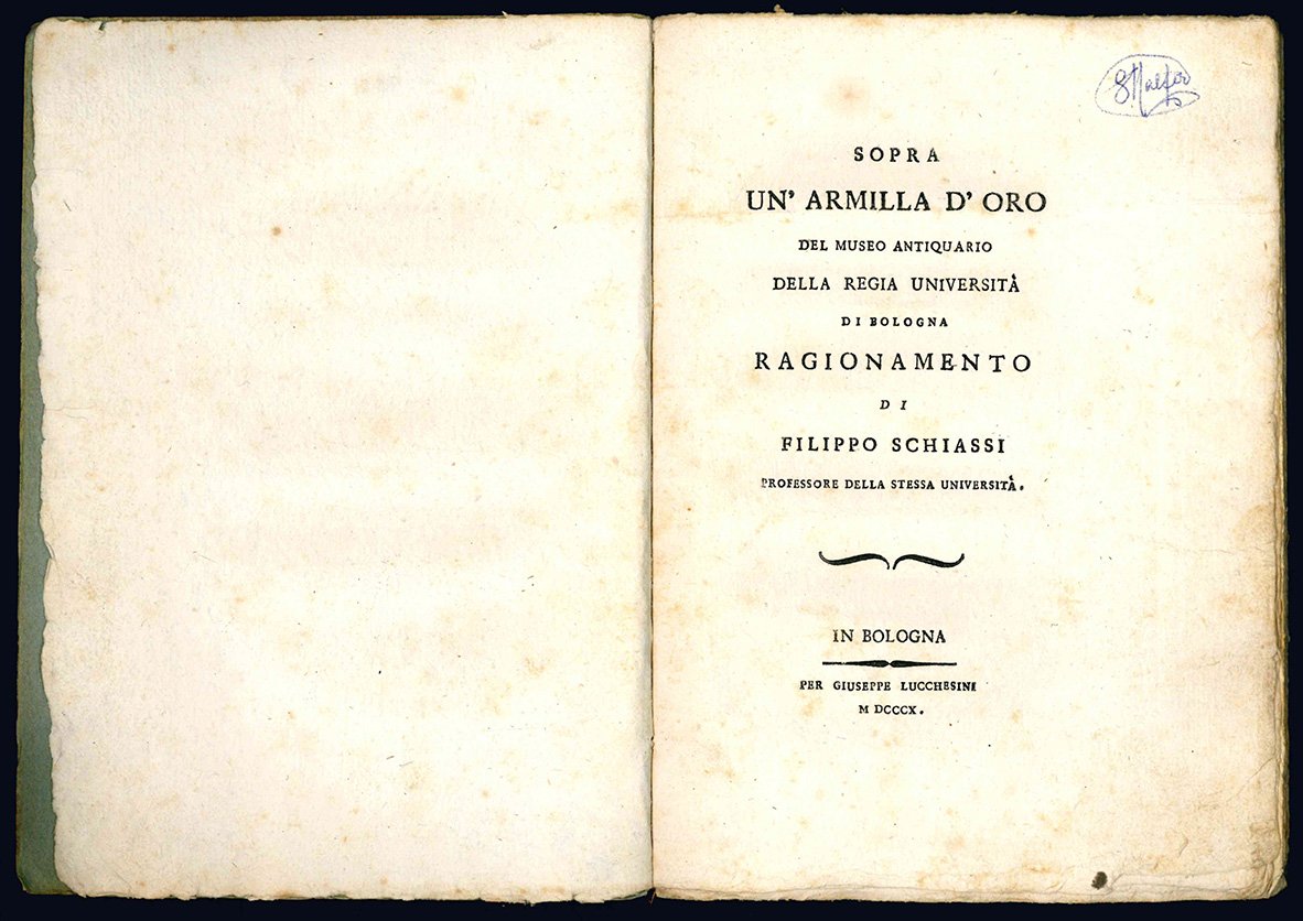 Sopra un'armilla d'oro del museo antiquario della Regia Università di Bologna. Ragionamento di Filippo Schiassi professore della stessa Università.