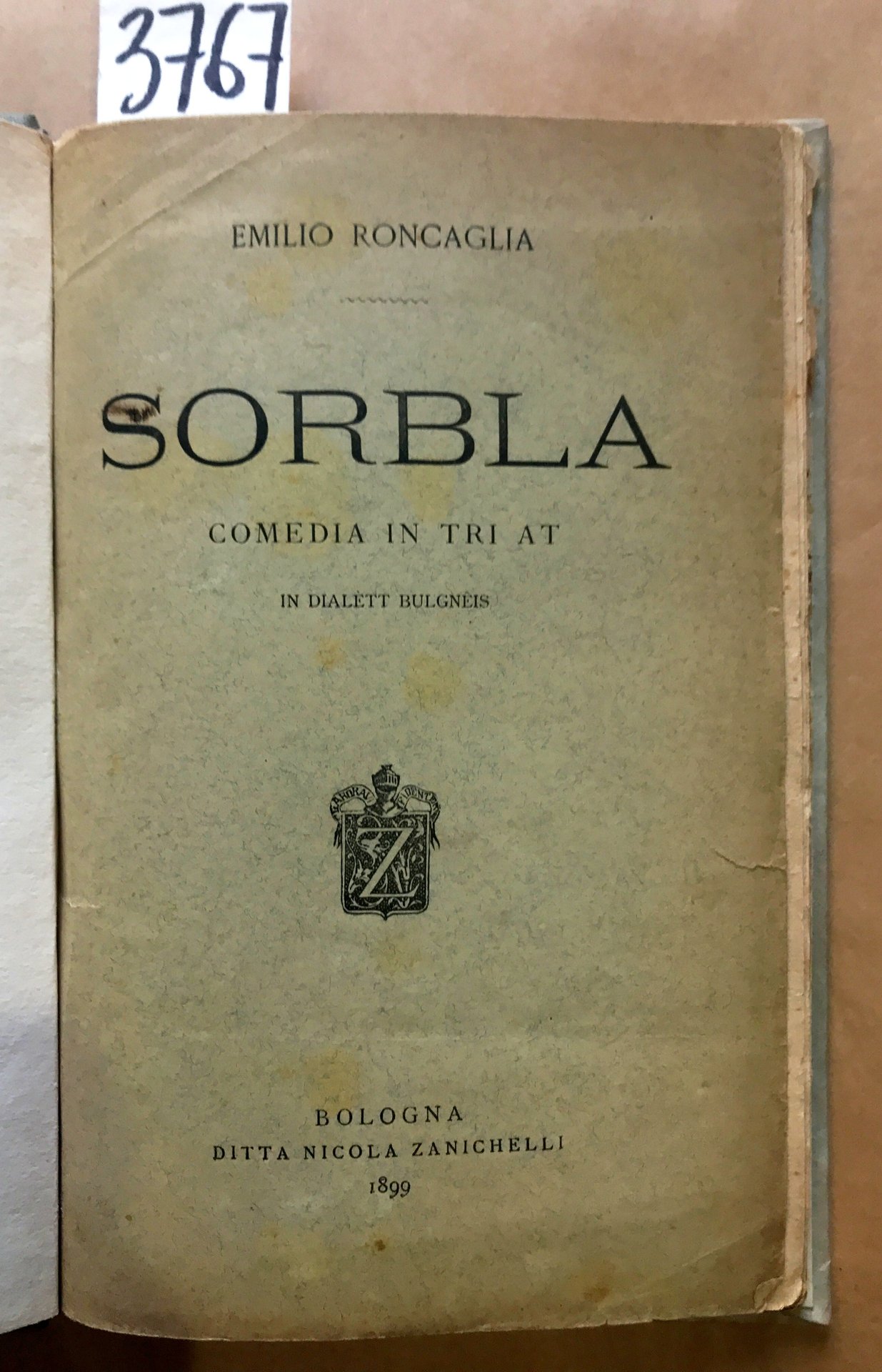 SORBLA: COMEDIA IN TRI AT IN DIALETT BULGNEIS.