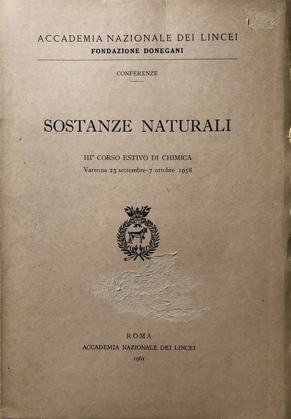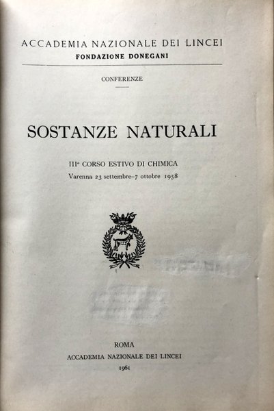 SOSTANZE NATURALI. III TERZO CORSO ESTIVO DI CHIMICA. (VARENNA, 23 SETTEMBRE-7 OTTOBRE 1958)