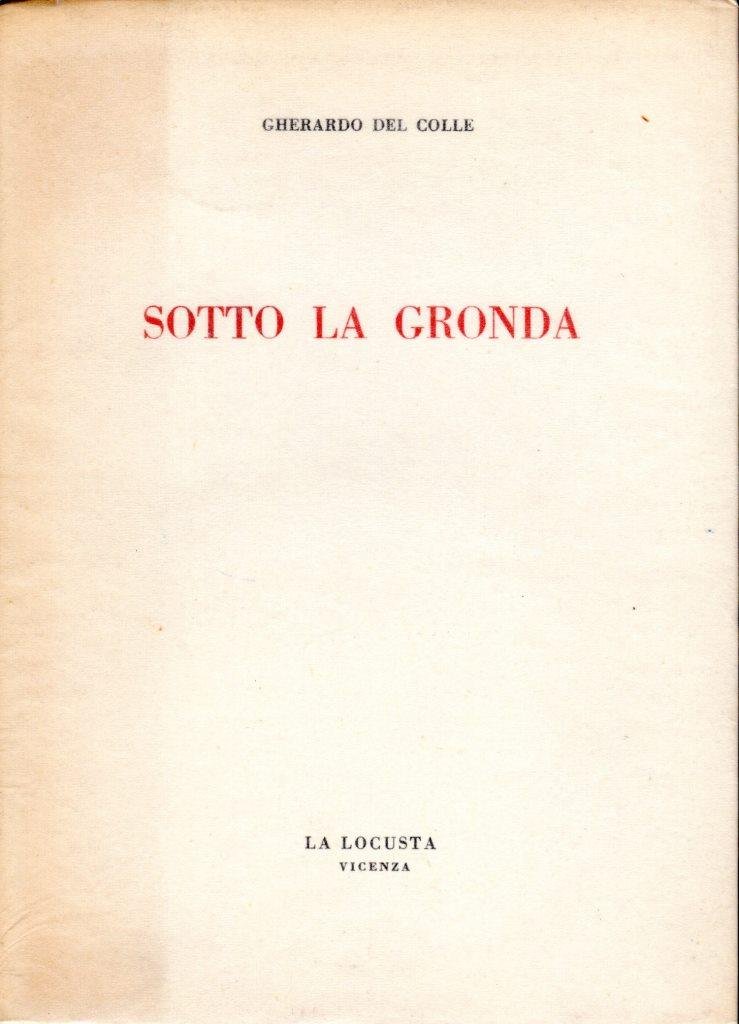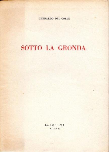 Sotto la gronda, pp. 94, formato 13 x 18.<BR>Copertina morbida con alette, di color crema, con titoli in nero e rosso al piatto anteriore e in nero sul dorso. Presente sovraccoperta trasparente di protezione.In prima pagina presente dedica dell'autore allo scrittore Pinghelli.<BR>Ottime condizioni.