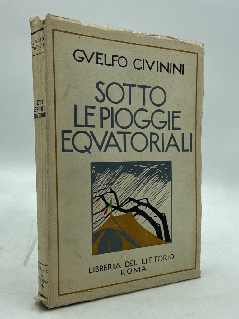 Brossura editoriale illustrata, cm 20x14, pp 216 (4), una tavola patinata in nero e una carta dell'itinerario ripiegata. Firma di proprietà sulla prima bianca. Resoconto della spedizione di Guelfo Civinini, sostenuto da Italo Balbo e accompagnato dal principe Carlo Marescotti Ruspoli, alla ricerca delle spoglie dell'esploratore Vittorio Bottego ucciso dai Galla nel 1897. Partito dall'Italia a fine febbraio 1926, il gruppo sostò ad Asmara e giunse ad Addis Abeba in aprile, da qui proseguendo in carovana fino a Gambela, nel Uallega. Poeta, novelliere, giornalista, Guelfo Civinini accompagnò alla vocazione letteraria quella guerriera: più volte trascurò il lavoro di corrispondente per il Corriere della Sera per unirsi ai militari italiani nei combattimenti in Libia e sul fronte italiano, e fu decorato al valor militare in Libia, nei Balcani, sul Carso, in Etiopia. Negli anni '20 lasciò il Corriere per dedicarsi alla letteratura alternando libri di ricordi e novelle d'ambientazione toscana a resoconti di viaggi in Africa, tornando solo occasionalmente all'attività giornalistica.