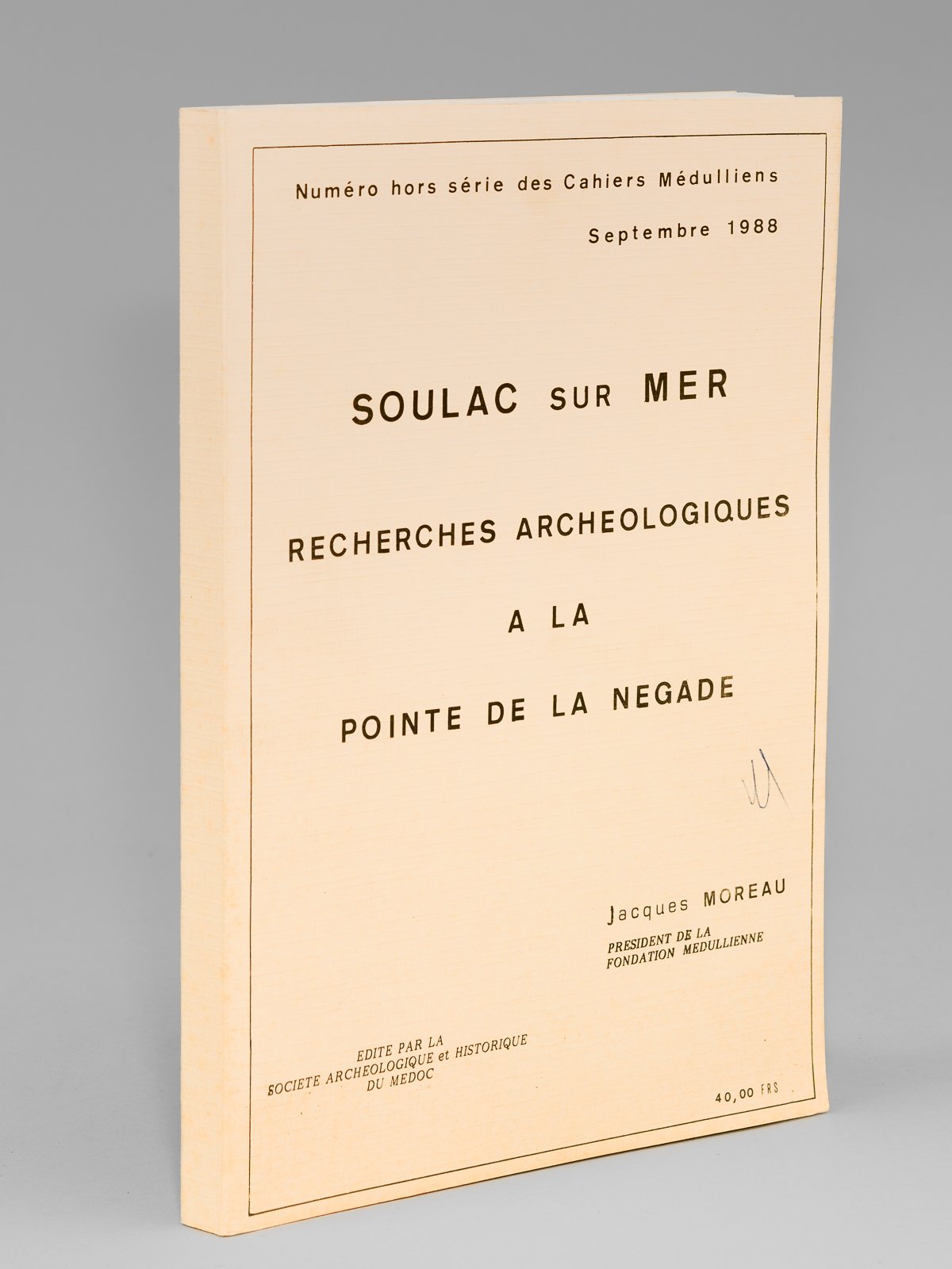 1 vol. in-4 br., Edité par la Société Archéologique et Historique du Médoc, Numéro hors série des Cahiers Médulliens, Septembre 1988 Exemplaire dédicacé par l'auteur au sénateur-maire de Soulac, Jean-François Pintat. Bon état (trace de stylo en couv., bon exemplaire par ailleurs).