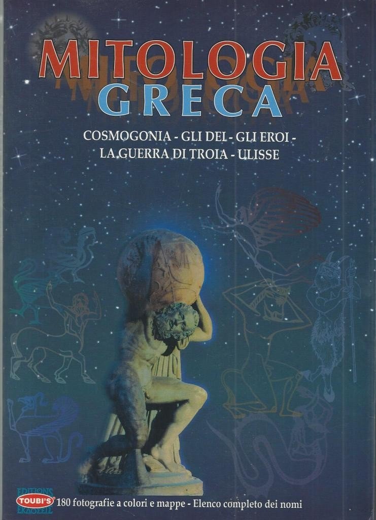 Sofia Souli, Mitologia greca, Toubi’s Editions (Toubis Editions), Atene 1995, pp. 174, ill. col., cm 24, br. ed. Sottotitolo alla prima di copertina: Cosmogonia – Gli Dei – Gli Eroi – La guerra di Troia – Ulisse. Testi di Sofia Souli. Traduzione di Antonio U. Bernardo. Leggere tracce d’uso, per il resto buona copia.