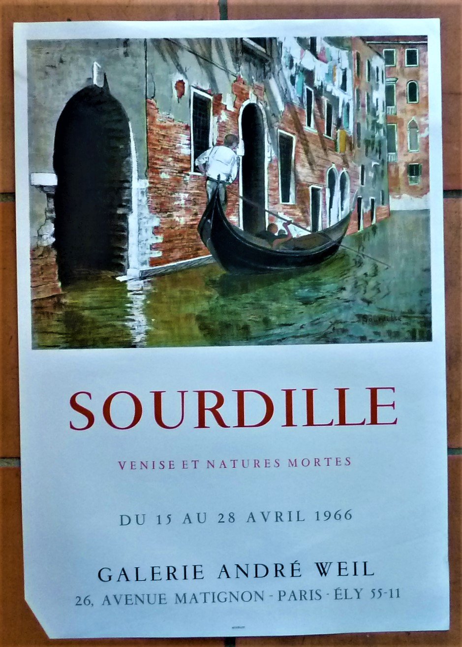 Sourdille. "Venise et Natures Mortes". Affiche éditée à l'occasion de l'exposition à la galerie André Weil du 15 au 28 avril 1966.