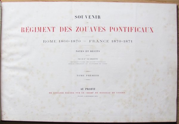 SOUVENIR DU REGIMENT DES ZOUAVES PONTIFICAUX - ROME 1860 - '70 - FRANCE 1870 - '71