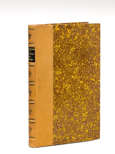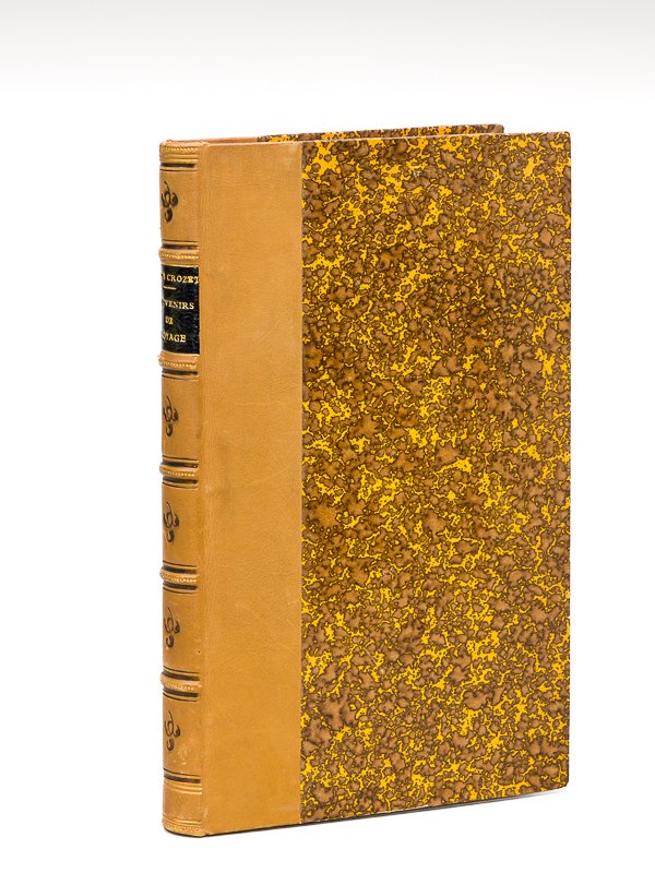 1 vol. in-8 reliure demi-veau marron, dos à 5 nerfs dorés orné (fleurons estampés à froid)Souvenirs de Voyage [ Réunion des 7 brochures originales ] Souvenirs de Voyage I : Le Château de Krogwenhausen. Légende tyrolienne, Tiré à 42 exemplaires numérotés (n°39), Typographie et Lithographie Ve Marius Olive, Marseille, 1862, 14 pp. et 1 f. blanc [ Suivi de : ] Souvenirs de Voyage II : Ce qu'on voit d'Athènes à Eleusis, par J. Unknown, Tiré à 50 exemplaires numérotés (n°27 signé par l'auteur), Typographie A. Makaire, Aix, 1862, 43 pp. et 1 f. blanc [ Suivi de : ] Souvenirs de Voyage III : L'Acropolis d'Athènes [ par ] Gheraios le Bouquiniste, Tiré à 50 exemplaires numérotés (n° 21 signé par l'auteur), Imprimerie de P. Gimbert, Draguignan, 1862, 33 pp. et 1 f. blanc [ Suivi de : ] Souvenirs de Voyage IV : La Tour d'Unspunnen (Oberland bernois), Tiré à 50 exemplaires numérotés (n° 34), Typographie de Veuve Marius Olive, Marseille, 1862, 23 pp. [ Suivi de : ] Souvenirs de Voyage V : Une Journée aux Ruines de Syracuse, par L. de Crozet, Tiré à 80 exemplaires numérotés (n° 42), Typographie et Lithographie Ve Marius Olive, Marseille, 1863, 32 pp. [ Suivi de : ] Souvenirs de Voyage [ VI ] : Discours véritable de l'Enterrement d'un Turc à Palerme en 1840, Tiré à 70 exemplaires numérotés (n° 59), Typographie Makaire, Aix, 1863, 2 ff., 8 pp. [ Suivi de : ] Souvenirs de Voyage VII : Les Glaciers des Hautes Alpes, par L. de Crozet, Tiré à 80 exemplaires numérotés (n° 21), Typographie et Lithographie Ve Marius Olive, Marseille, 1864, 16 pp. Rarissime volume parfaitement complet, recueillant en édition originale les 7 brochures de "Souvenirs de Voyage" publiées à petit nombre (tirages numérotés compris entre 42 et 80 exemplaires) par le bibliophile marseillais Laurent de Crozet (1809-1881). Bel exemplaire en parfait état. Cf Reboul, Anonymes, Pseudonymes, 2049