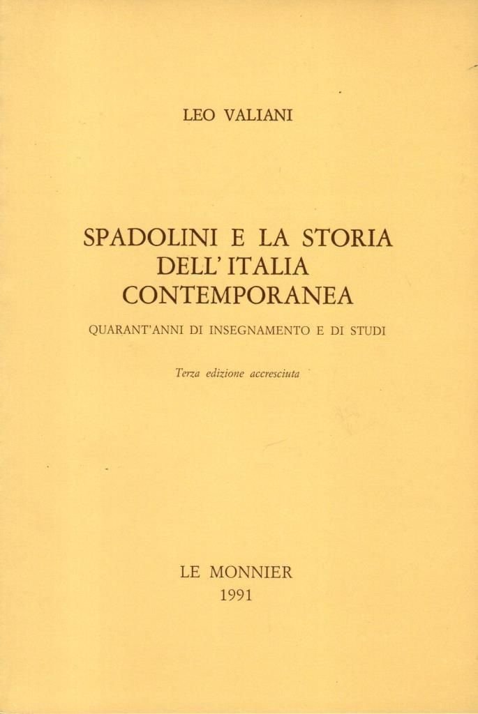 "Spadolini e la storia dell'Italia contemporanea. Quarant'anni di insegnamento e di studi", terza edizione 1991, pp. 97, formato 14,5 x 21,5.