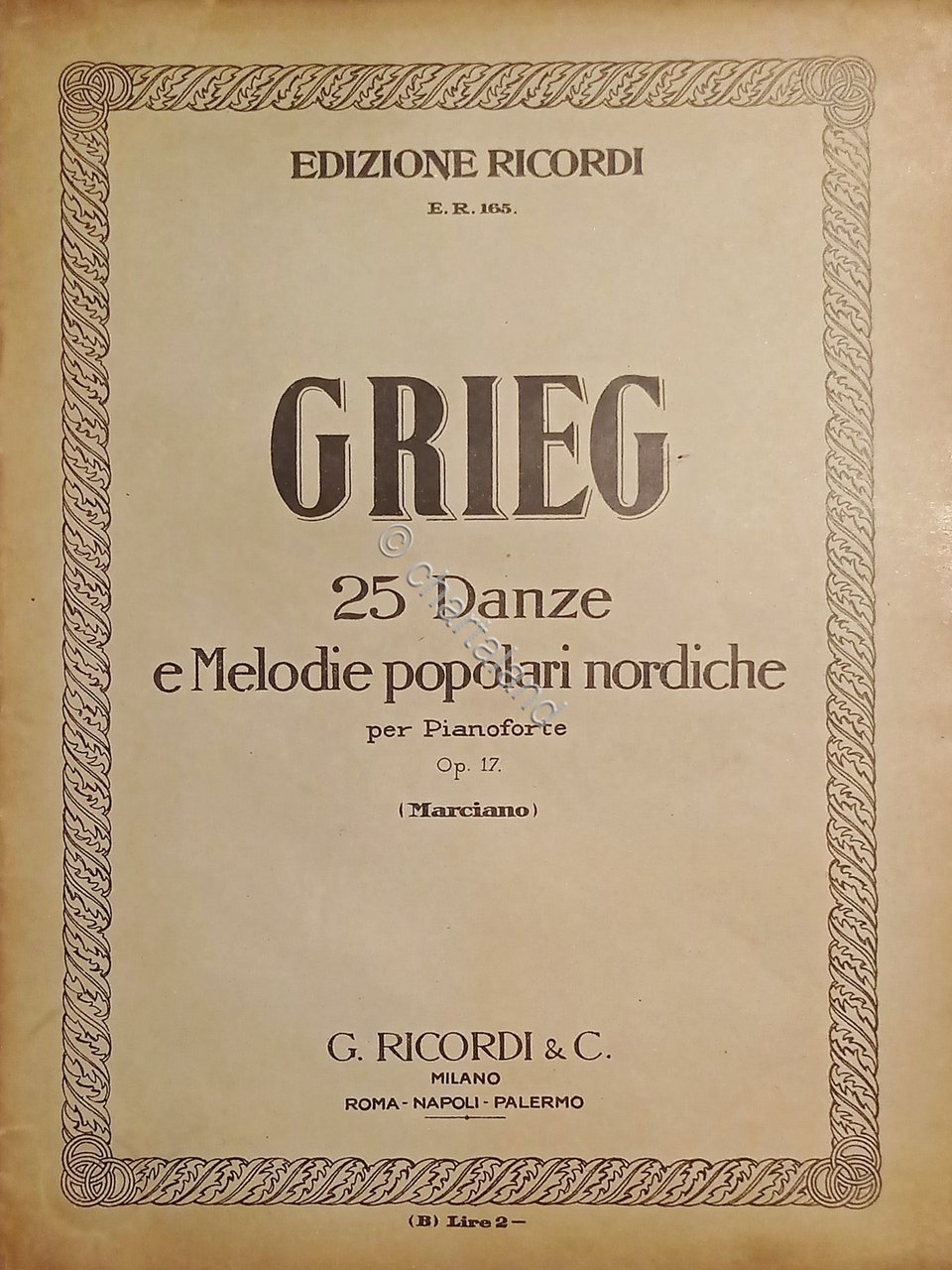 Spartiti - 25 Danze e Melodie Popolari Nordiche per Piano di Edvard Grieg - Op. 17 Formato grande. Pagine 23 Condizioni buone con piccoli segni del tempo come da foto.