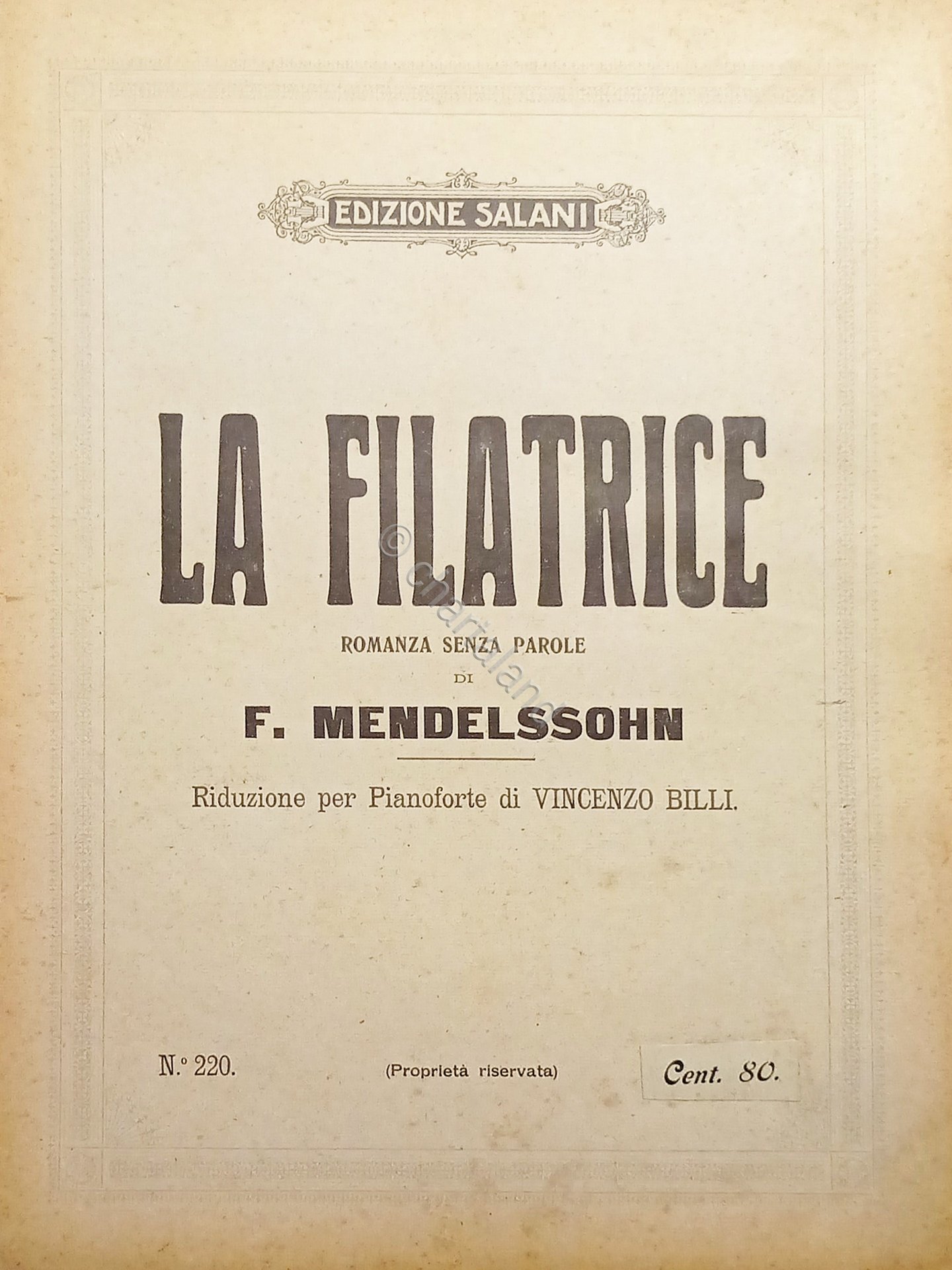 Spartiti - La Filatrice - Romanza di F. Mendelssohn per Piano di V. Billi - 1921
