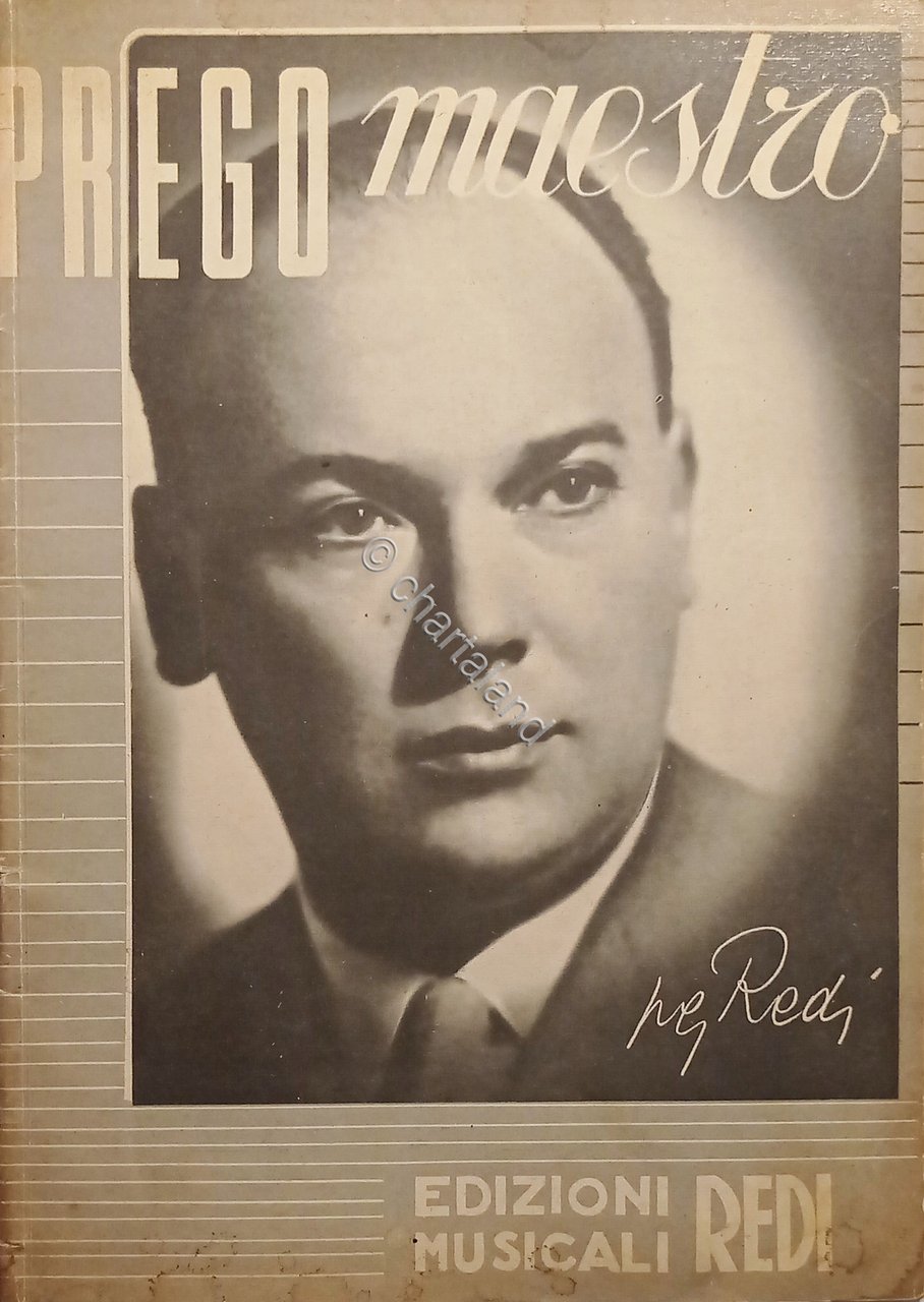 Spartiti - Prego Maestro - Raccolta delle più Popolari Canzoni di P. G. Redi - 1950 Formato grande. Pagine 53 Condizioni buone con piccoli segni del tempo come da foto.