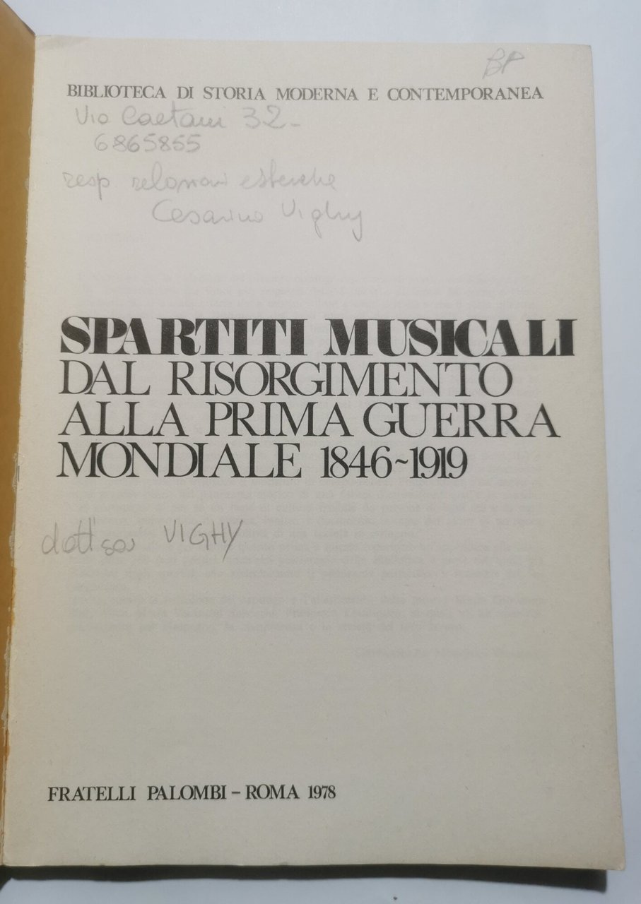 Spartiti musicali dal Risorgimento alla Prima Guerra Monduìiale 1846 - 1919