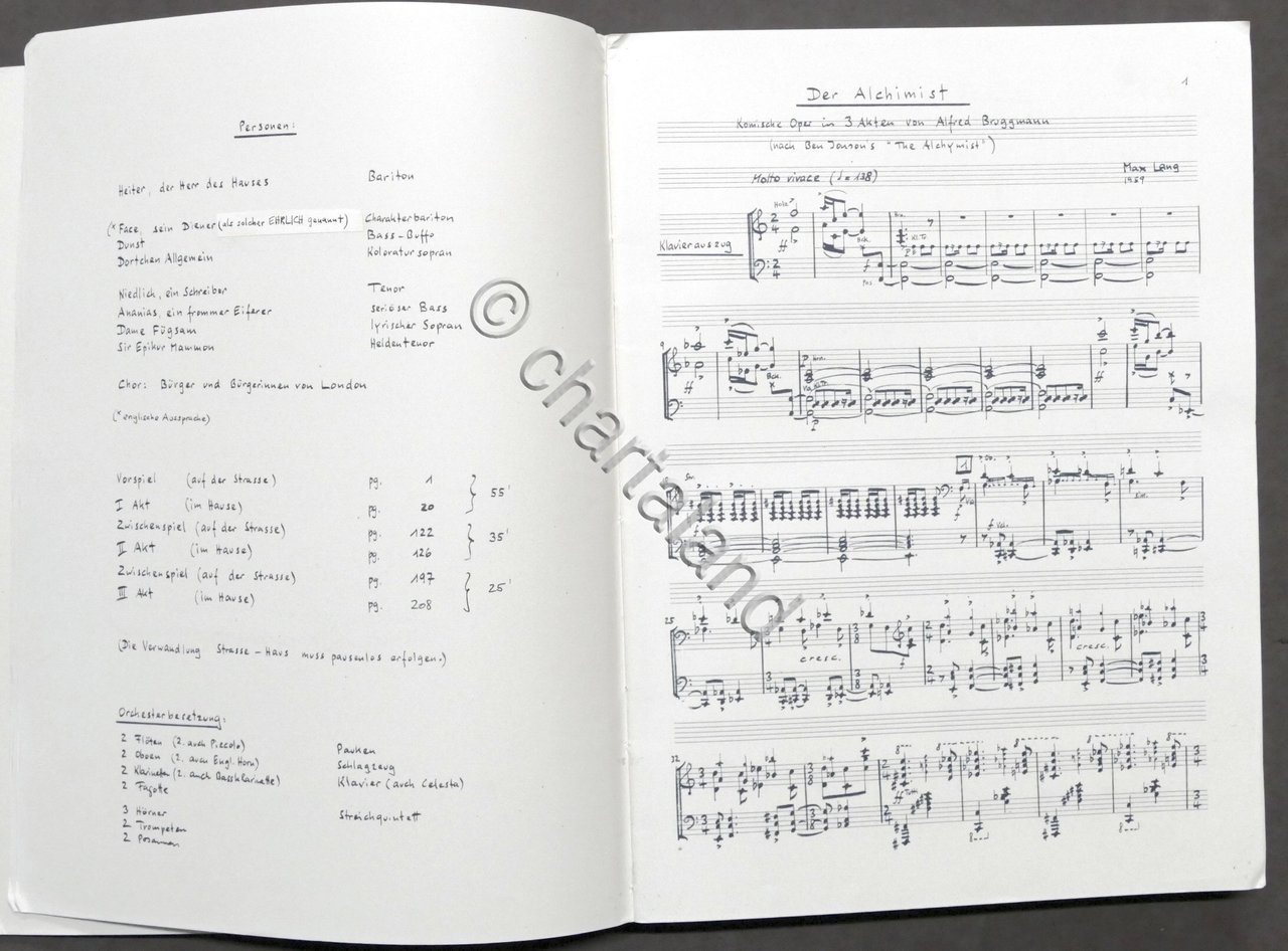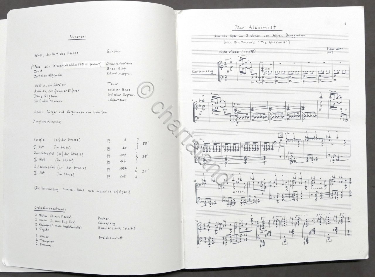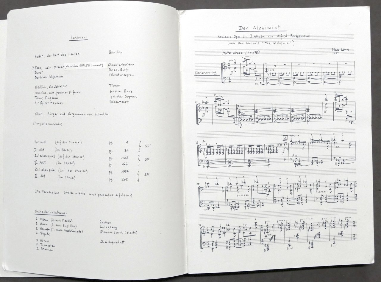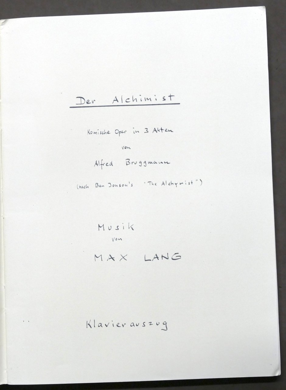 Spartito - Max Lang - Der Alchimist - Opera di Bruggmann - pianoforte 1960 ca.