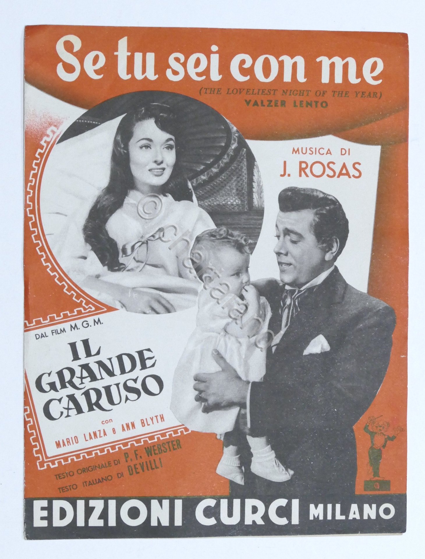 Spartito - Se tu sei con me - Valzer lento - dal Film "Il grande Caruso" - ed. Curci N. 5337 Pag. 2 F. G. Condizioni molto buone.