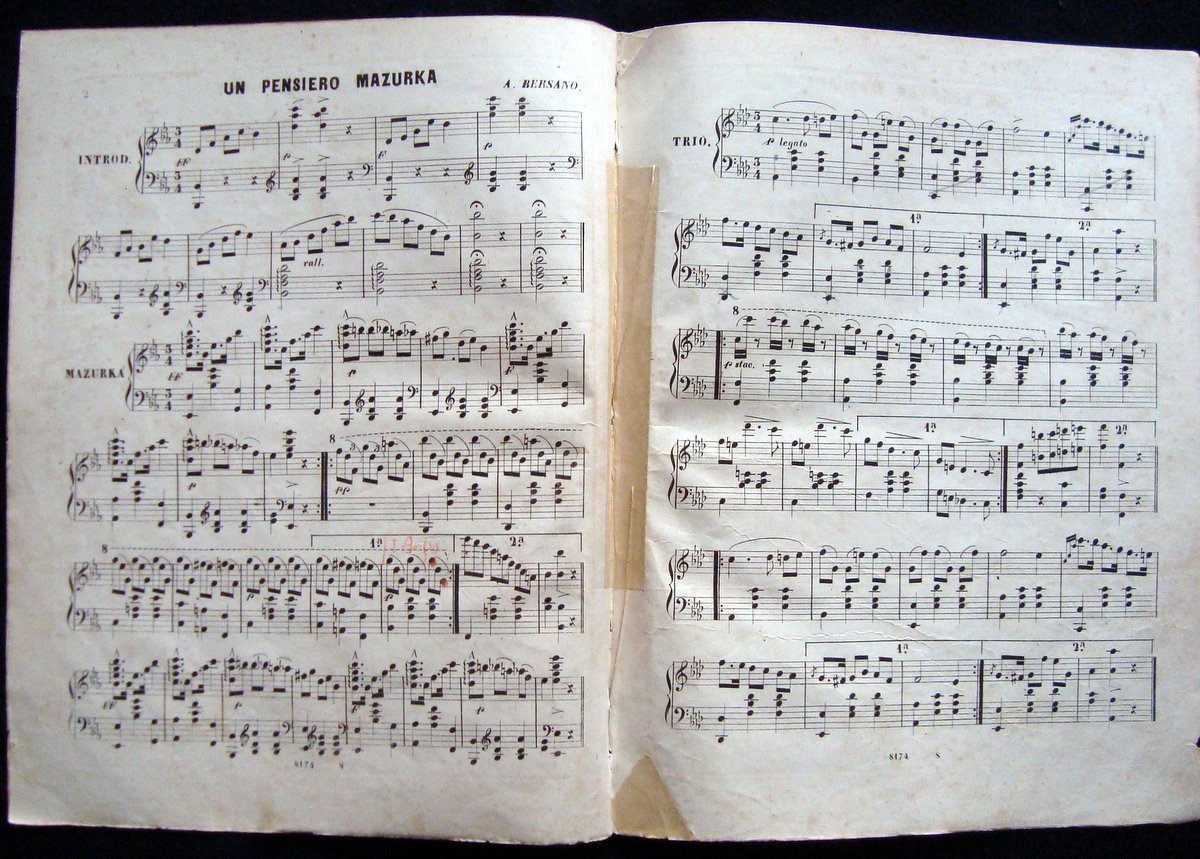 Spartito A. Bersano Un Pensiero Mazurka 1880 ca Torino Giudici e Strada