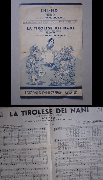 Spartito / accordi "EHI - HO! Musica di Frank Churchill. La Tirolese dei Nani. Walt Disney BIANCANEVE E I SETTE NANI"