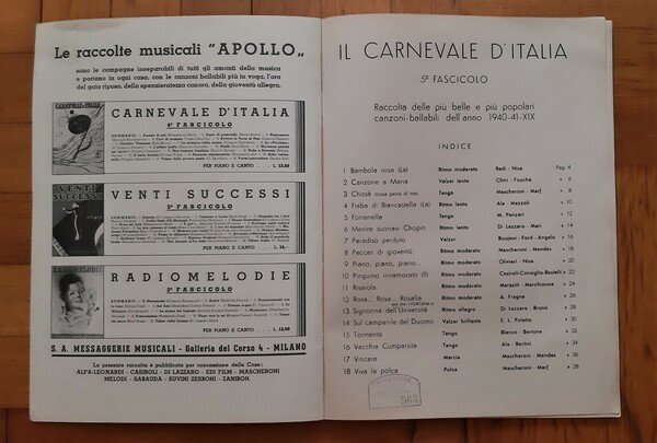 Spartito Carnevale d'Italia le più belle canzoni 1940-41 n.5. Ill. Boccasile