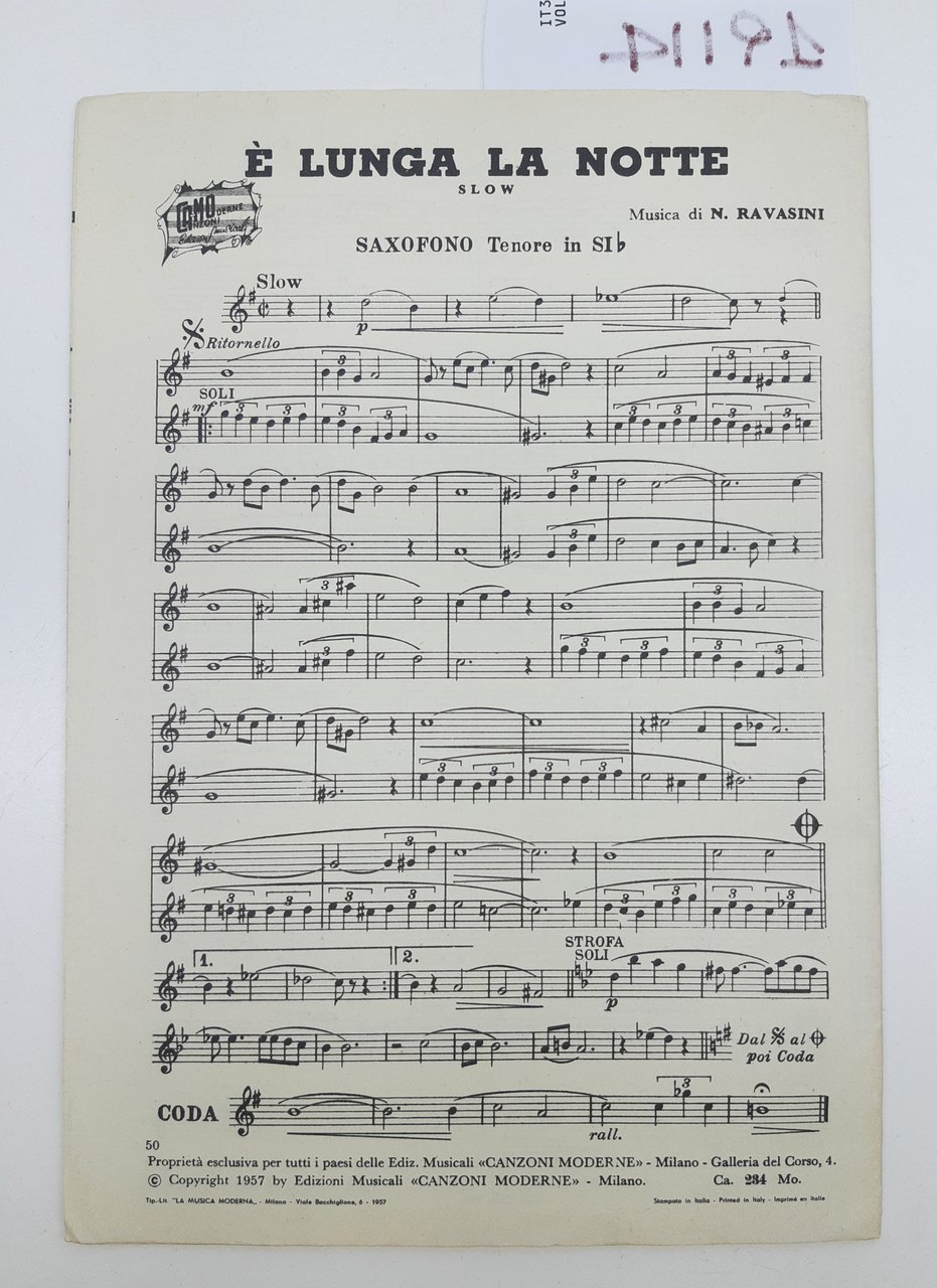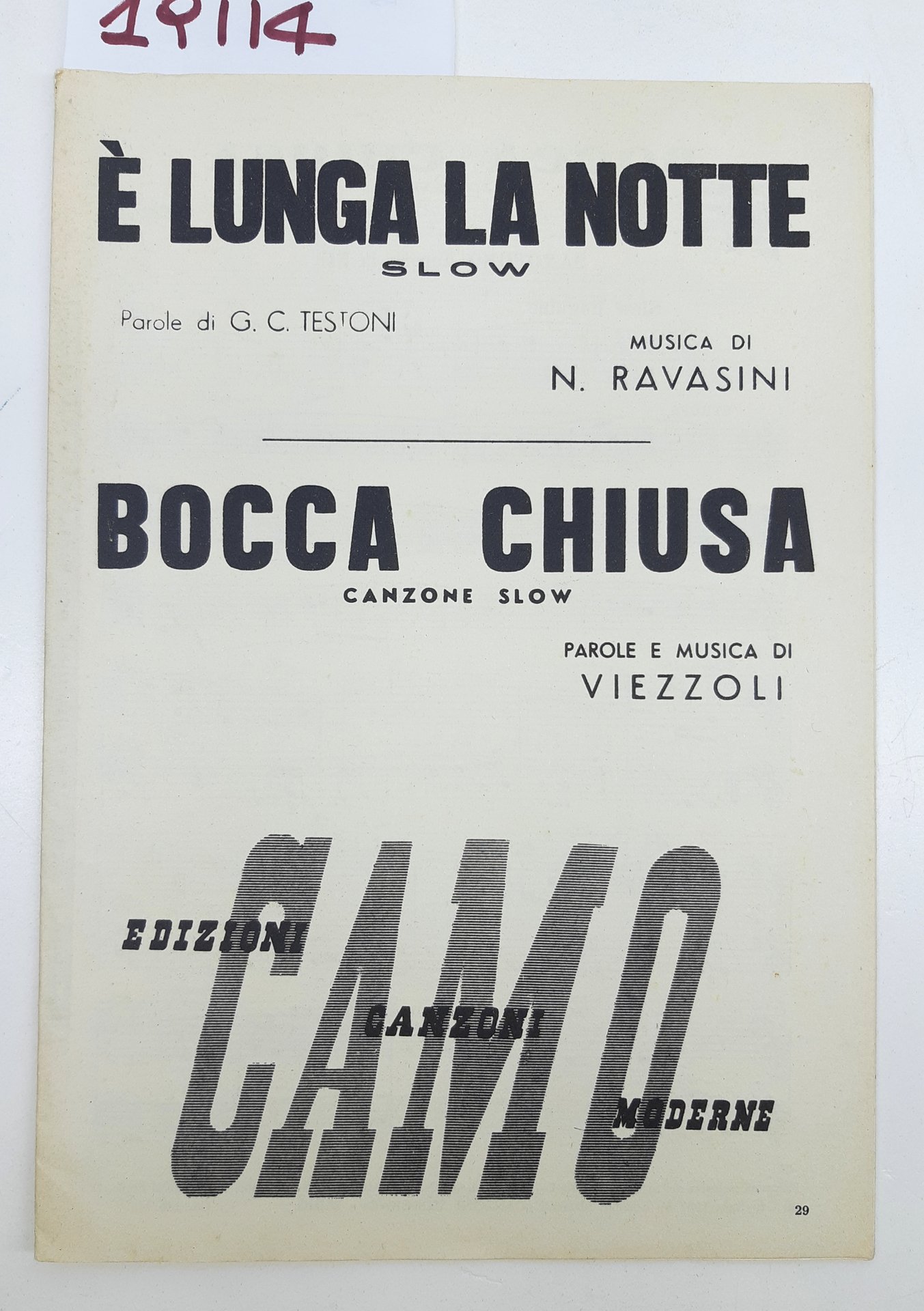Spartito È la lunga notte Bocca chiusa Edizioni Canzoni Moderne Camo 1957