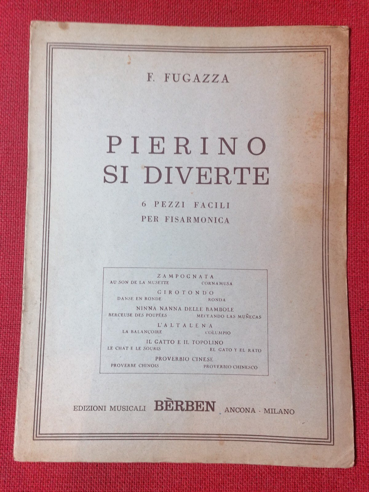 SPARTITO F.Fugazza PIERINO SI DIVERTE 6 pezzi facili per fisarmonica Berben 1967