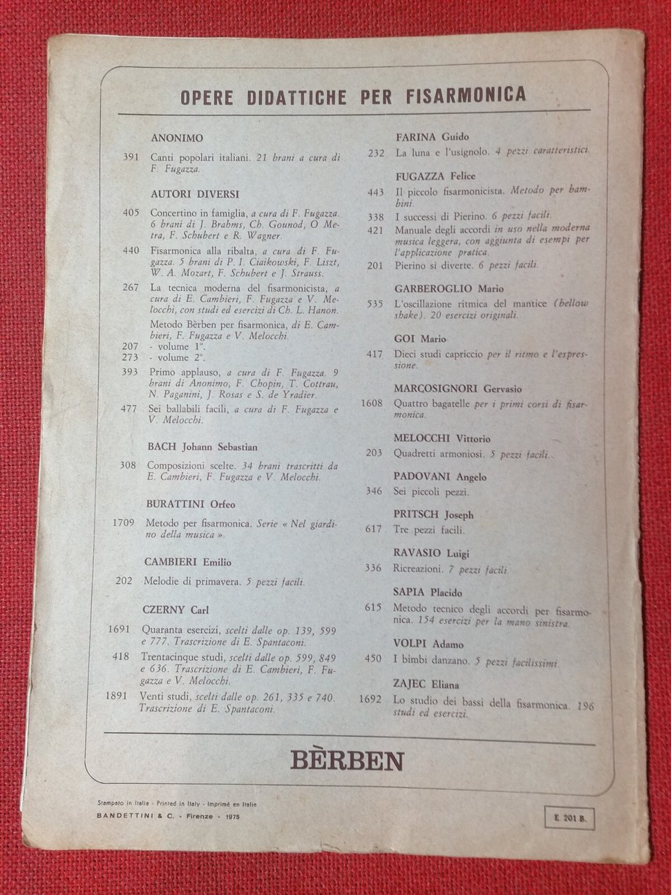 Edizioni musicali Bèrben Ancona, 1967 Discrete condizioni generali compatibilmente con l'età