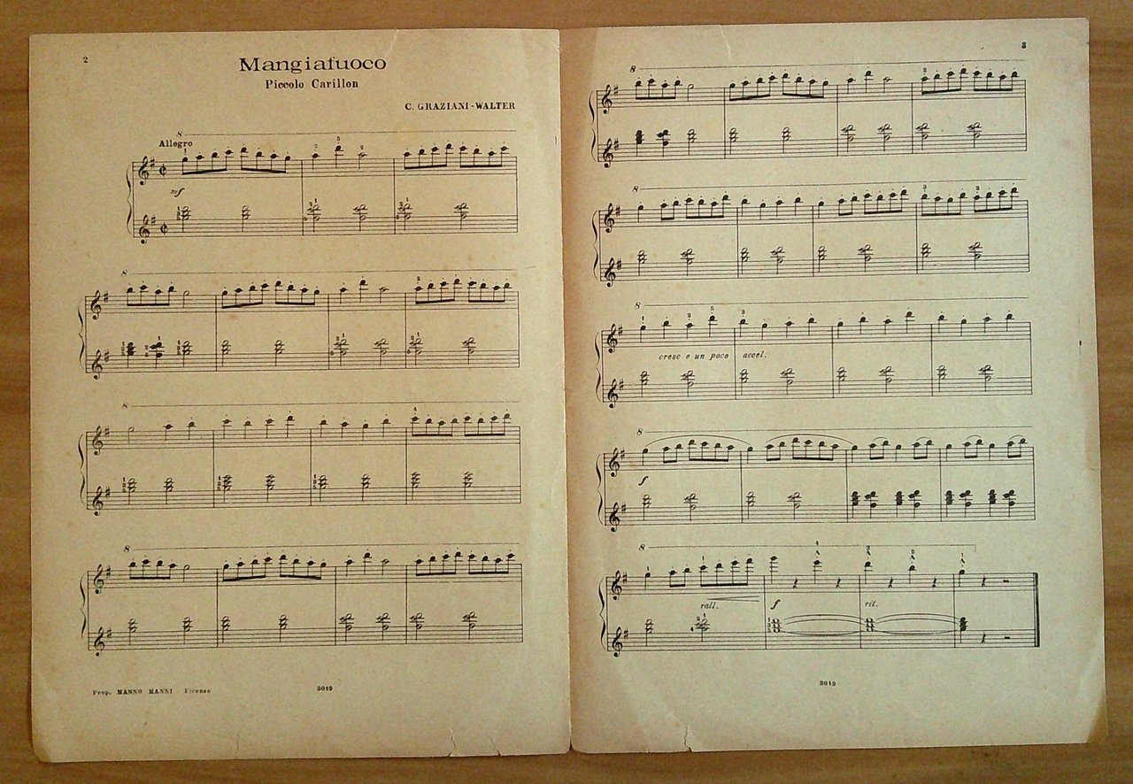 Spartito MANGIAFUOCO, anni '20 Musiche C.G. Walter
