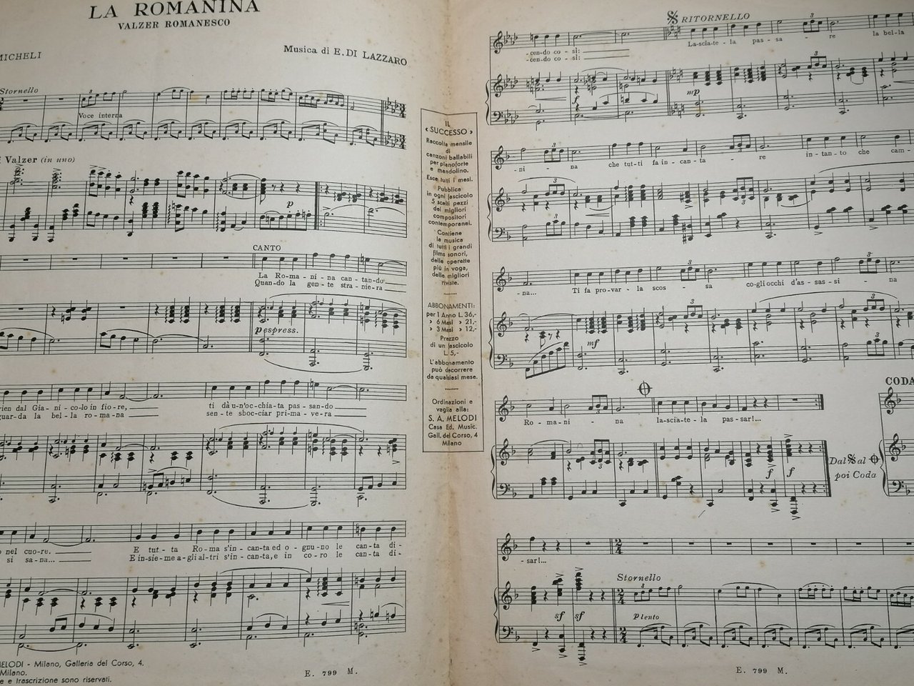 SPARTITO MUSICALE - LA ROMANINA Micheli/Di Lazzaro (1938) Valzer Romanesco