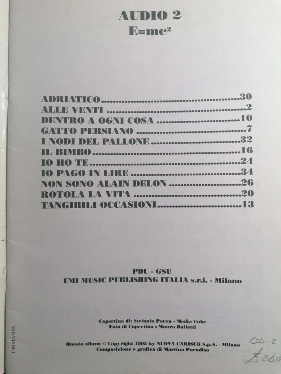Spartito musicale AUDIO 2 E=mc2 - Carisch 1995 (RARO) Buone condizioni generali (si inviano ulteriori foto su richiesta).
