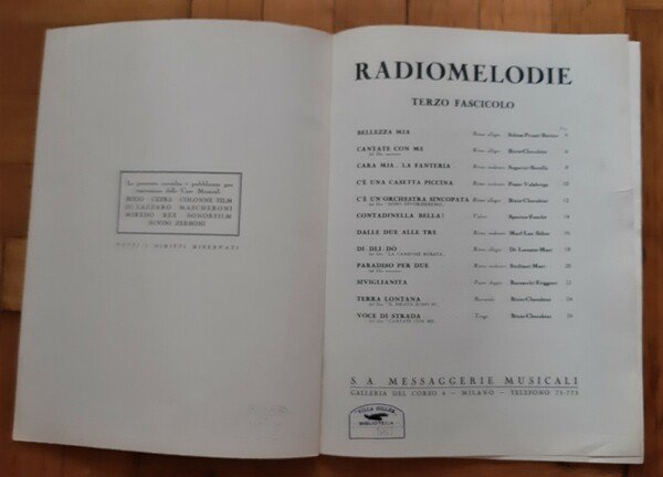 Spartito RADIOMELODIE 3 - Messaggerie musicali 1941. Ill. BOCCASILE
