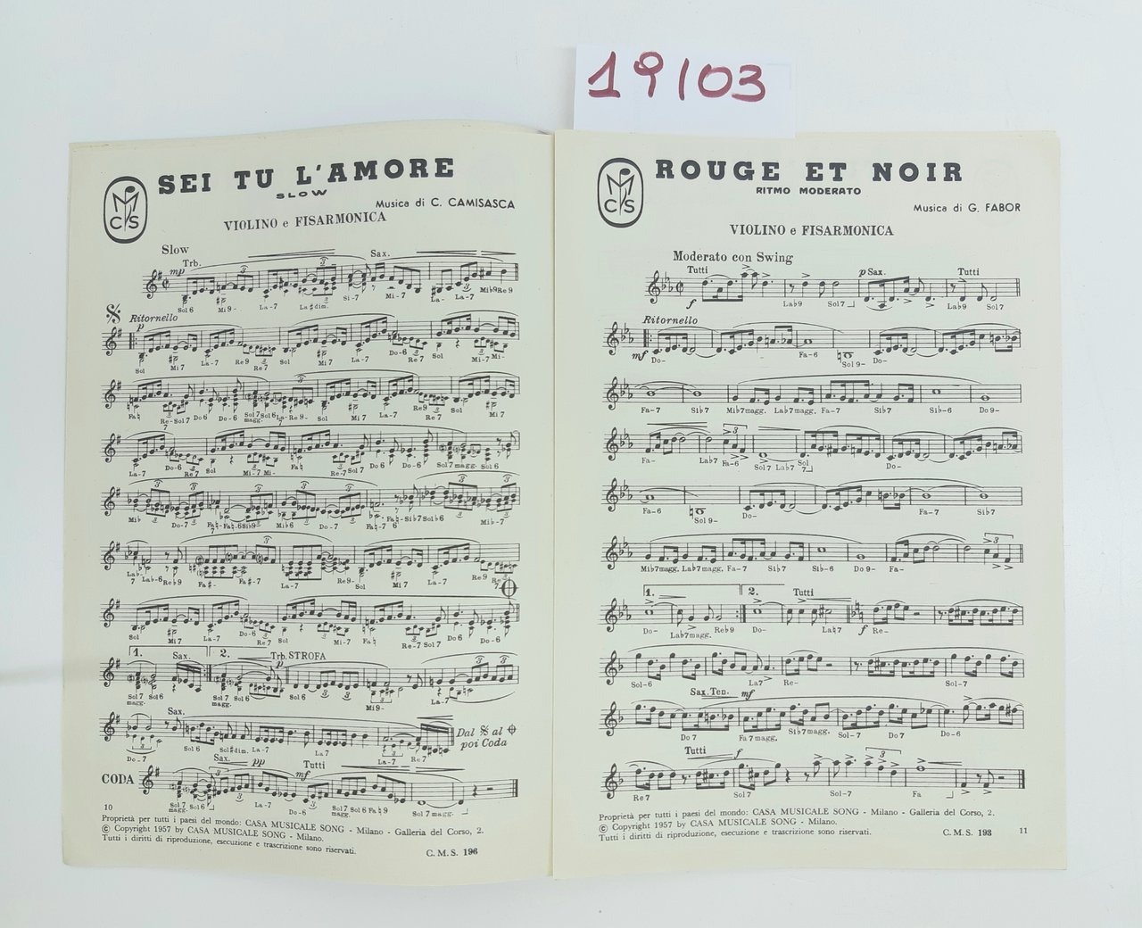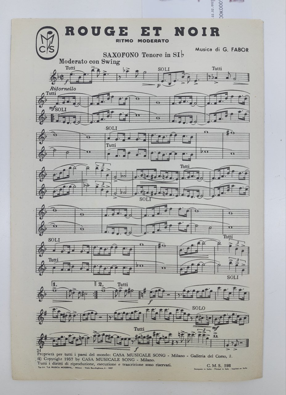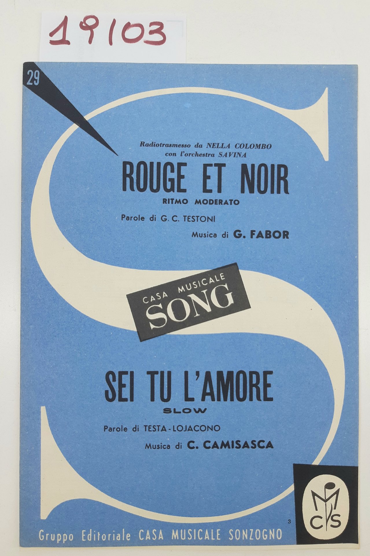 Spartito Rouge et Noir Sei tu l'amore Gruppo Editoriale Casa Musicale Sonzogno 1957
